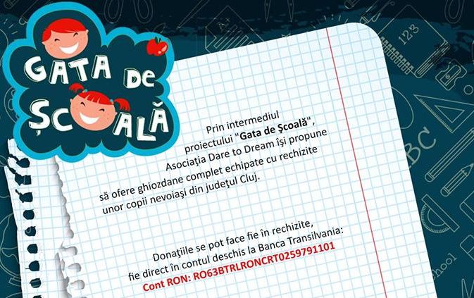 Asociatia Dare to Dream organizează, pentru al cincilea an, o campanie de strângere de fonduri, rechizite și ghiozdane pentru copiii care provin din familii cu posibilități financiare reduse.